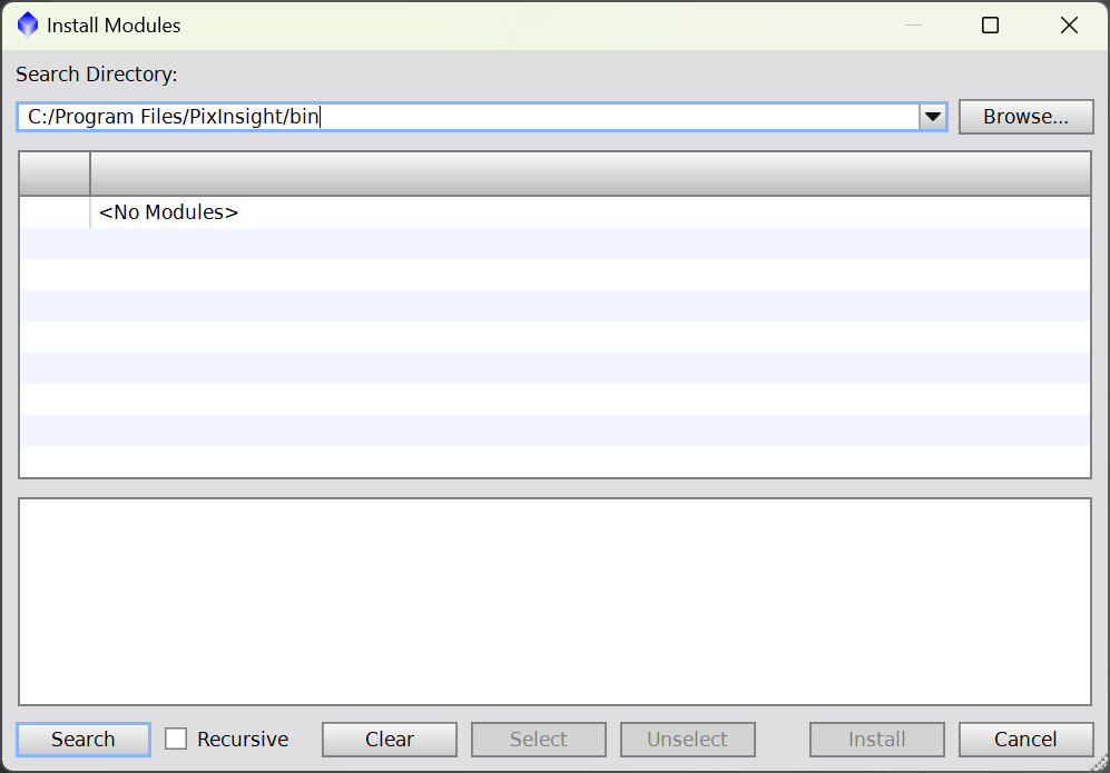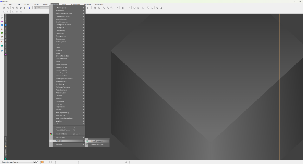 V PixInsightu otevřete Process → Modules → Install Modules.