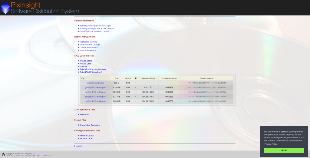 Gaia je obrovský katalog – databáze hvězd, který vytvořila Evropská kosmická agentura (ESA) v rámci mise Gaia. Jedná se o modul integrovaný přímo v PixInsight a pro jeho funkčnost je potřeba stáhnout databázi Gaia. To lze provést přímo ze stránek PixInsight na záložce Software distribution. Katalog není nezbytné mít stažený v počítači, ale umožní nám to využívat funkce jako Image Solver i bez internetového připojení. Pokud máte ale málo místa na disku, málo času či jinou výmluvu, lze Gaiu přeskočit.