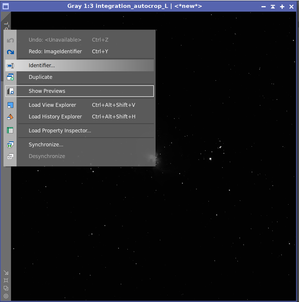 Doporučuji si jednotlivé kanály přejmenovat na kratší názvy, třeba prostě L,R,G,B. Přejmenování provedeme kliknutím pravým tlačítkem na název okna a volbou Identifier.